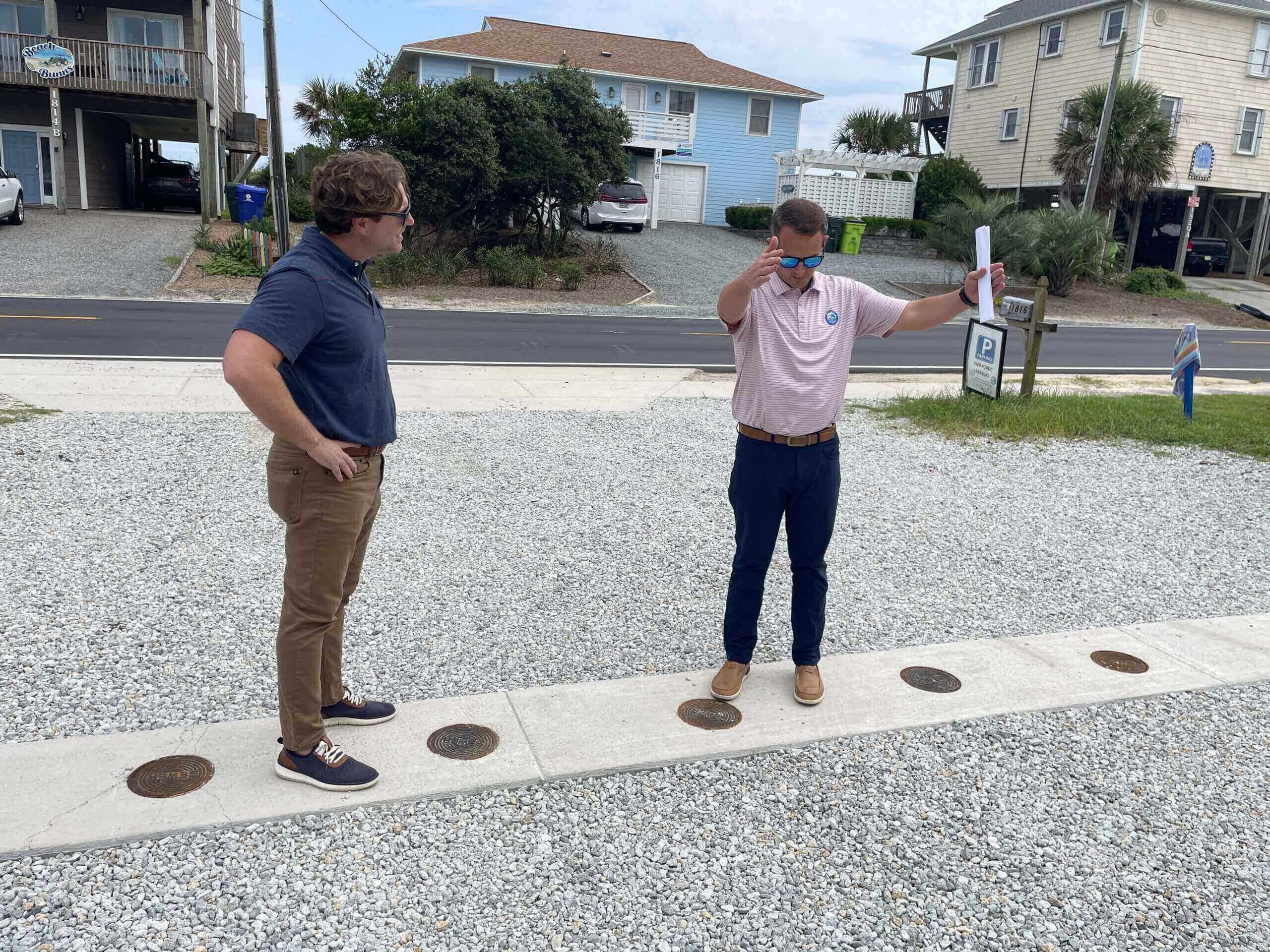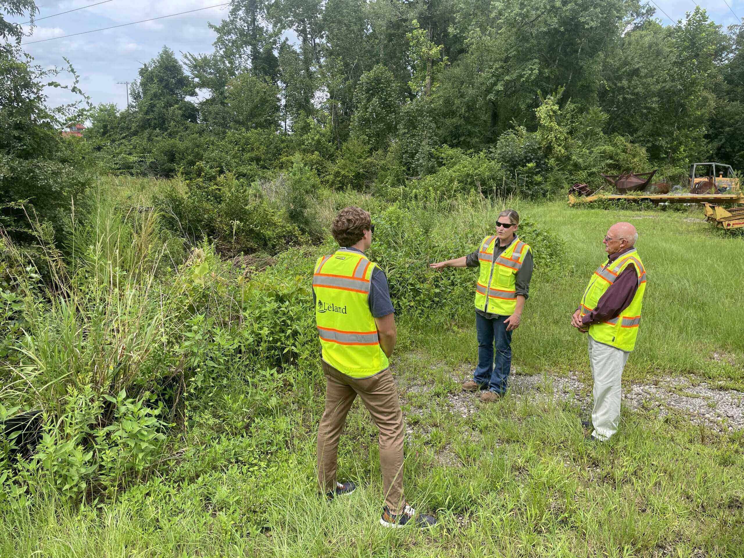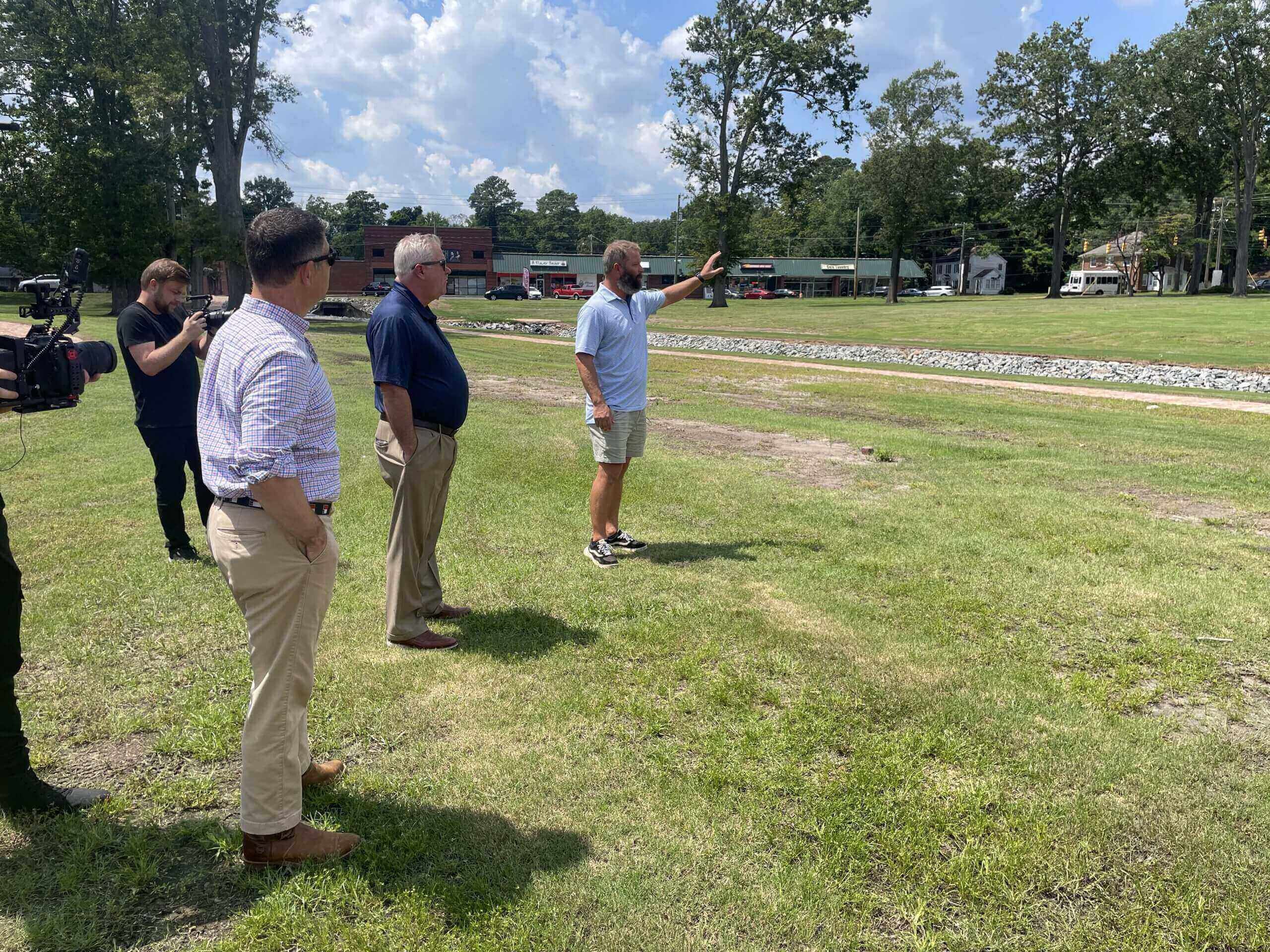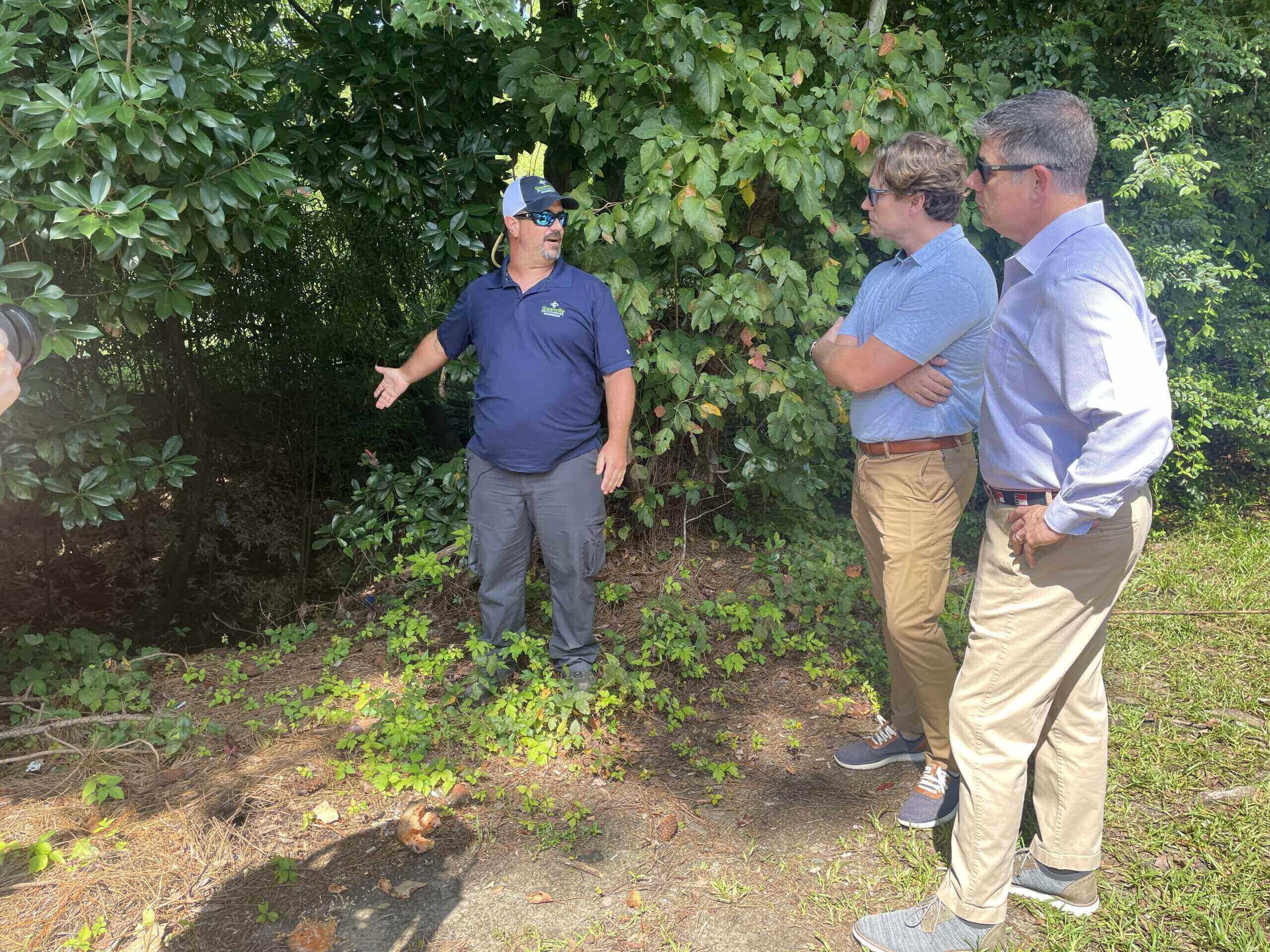 In Leland, AFC staff and city staff visited a well-traveled roadway that connects the city to several schools. Only a week prior, the roadway flooded from rainfall remnants of Hurricane Dorian. In the recent state budget, Leland received $1 million to replace a pipe under the road with two larger box culverts, increasing the amount of water that can flow under the road during storms.