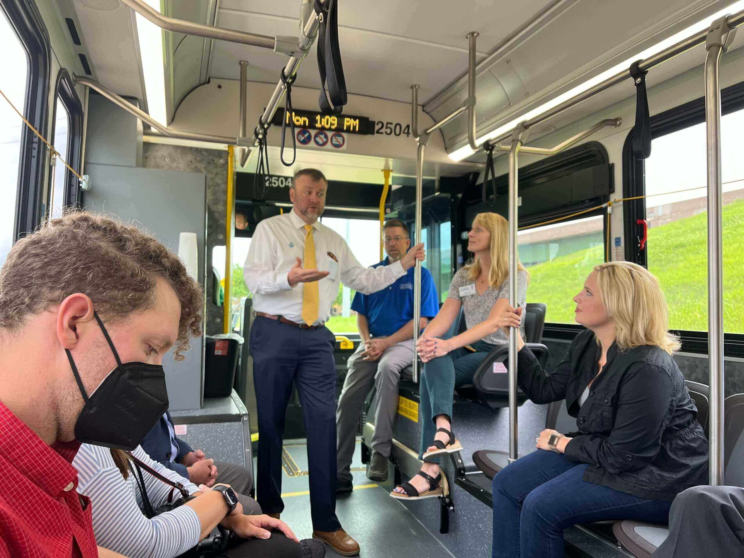 AFC Senior Government Relations Director Brandon Renz speaks to bus tour.